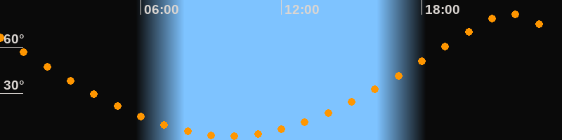 | Höchster Stand (Kulmination) | 21:46 Uhr (h = 81,2°) |