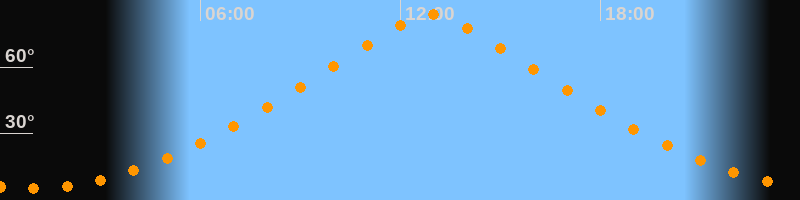 | Höchster Stand (Kulmination) | 12:55 Uhr (h = 83,9°) |
