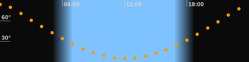 | Höchster Stand (Kulmination) | 00:05 Uhr (h = 83,9°) |