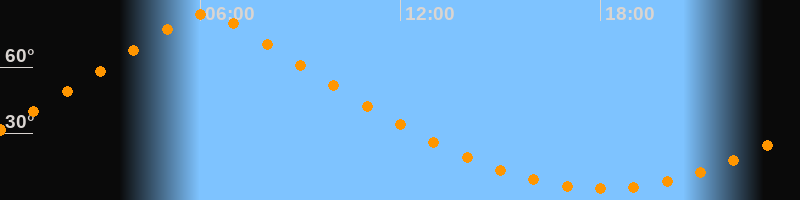 | Höchster Stand (Kulmination) | 06:08 Uhr (h = 83,9°) |