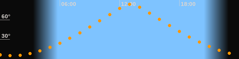| Höchster Stand (Kulmination) | 13:06 Uhr (h = 83,9°) |