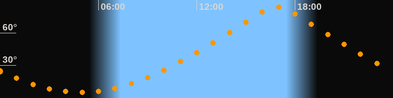 | Höchster Stand (Kulmination) | 16:54 Uhr (h = 83,9°) |