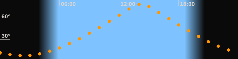 | Höchster Stand (Kulmination) | 14:12 Uhr (h = 83,9°) |