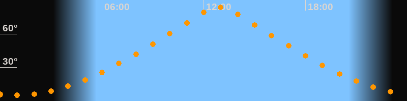 | Höchster Stand (Kulmination) | 12:54 Uhr (h = 83,9°) |
