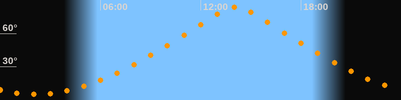 | Höchster Stand (Kulmination) | 14:06 Uhr (h = 83,9°) |