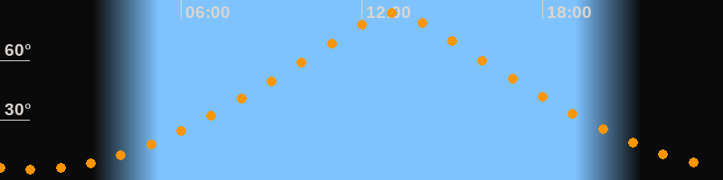 | Höchster Stand (Kulmination) | 13:03 Uhr (h = 83,9°) |