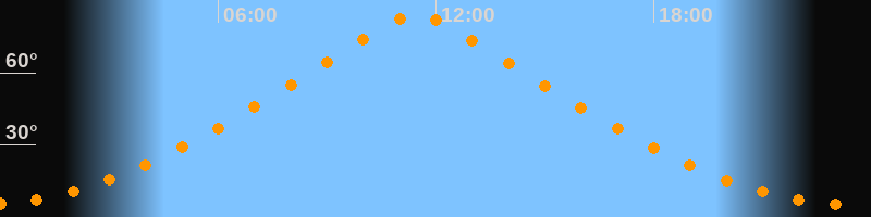 | Höchster Stand (Kulmination) | 11:28 Uhr (h = 83,9°) |