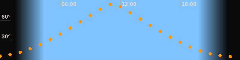| Höchster Stand (Kulmination) | 11:13 Uhr (h = 83,9°) |