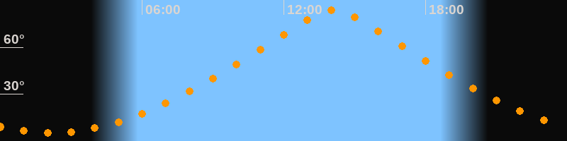 | Höchster Stand (Kulmination) | 14:07 Uhr (h = 83,9°) |