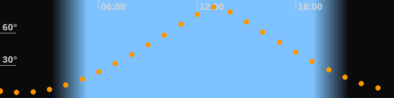 | Höchster Stand (Kulmination) | 13:08 Uhr (h = 83,9°) |