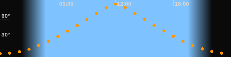 | Höchster Stand (Kulmination) | 12:01 Uhr (h = 83,9°) |