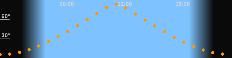 | Höchster Stand (Kulmination) | 11:57 Uhr (h = 83,9°) |