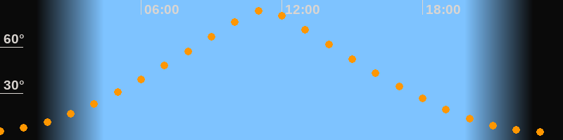 | Höchster Stand (Kulmination) | 11:14 Uhr (h = 83,9°) |
