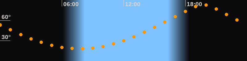 | Höchster Stand (Kulmination) | 19:42 Uhr (h = 83,2°) |