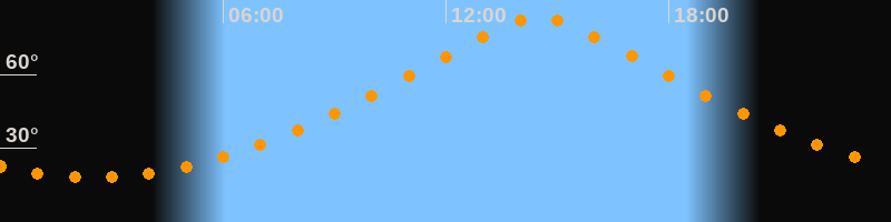 | Höchster Stand (Kulmination) | 14:30 Uhr (h = 83,2°) |