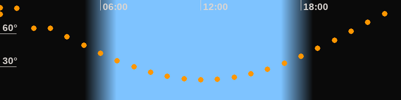 | Höchster Stand (Kulmination) | 00:09 Uhr (h = 83,2°) |