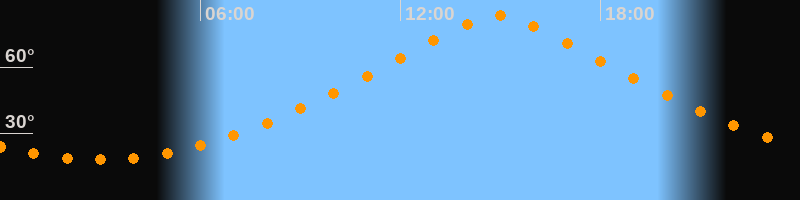 | Höchster Stand (Kulmination) | 14:55 Uhr (h = 83,2°) |