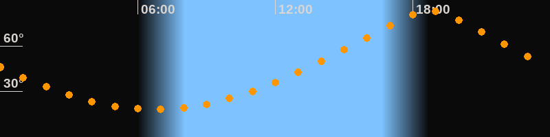| Höchster Stand (Kulmination) | 18:43 Uhr (h = 83,2°) |