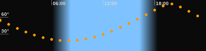 | Höchster Stand (Kulmination) | 19:51 Uhr (h = 83,2°) |