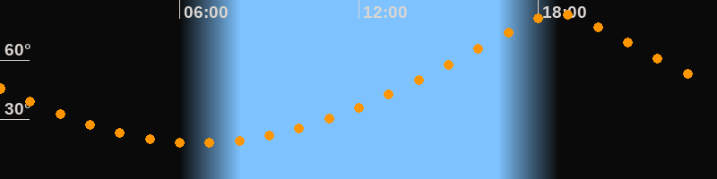 | Höchster Stand (Kulmination) | 18:41 Uhr (h = 83,2°) |