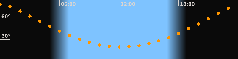 | Höchster Stand (Kulmination) | 00:12 Uhr (h = 83,2°) |