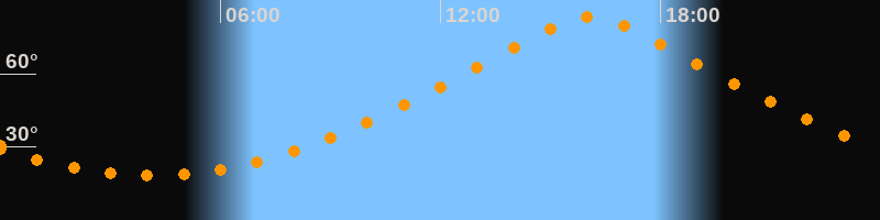 | Höchster Stand (Kulmination) | 16:05 Uhr (h = 83,2°) |