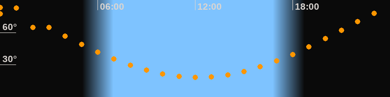 | Höchster Stand (Kulmination) | 00:07 Uhr (h = 83,2°) |