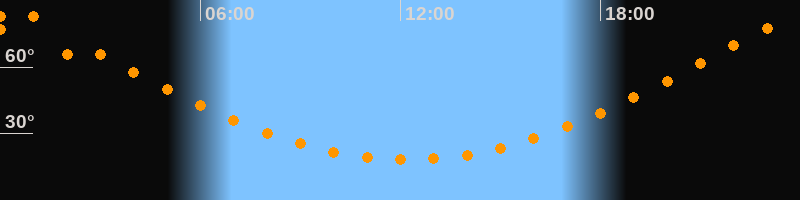 | Höchster Stand (Kulmination) | 00:12 Uhr (h = 83,2°) |