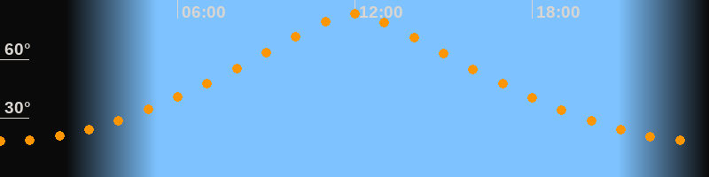 | Höchster Stand (Kulmination) | 11:58 Uhr (h = 83,2°) |