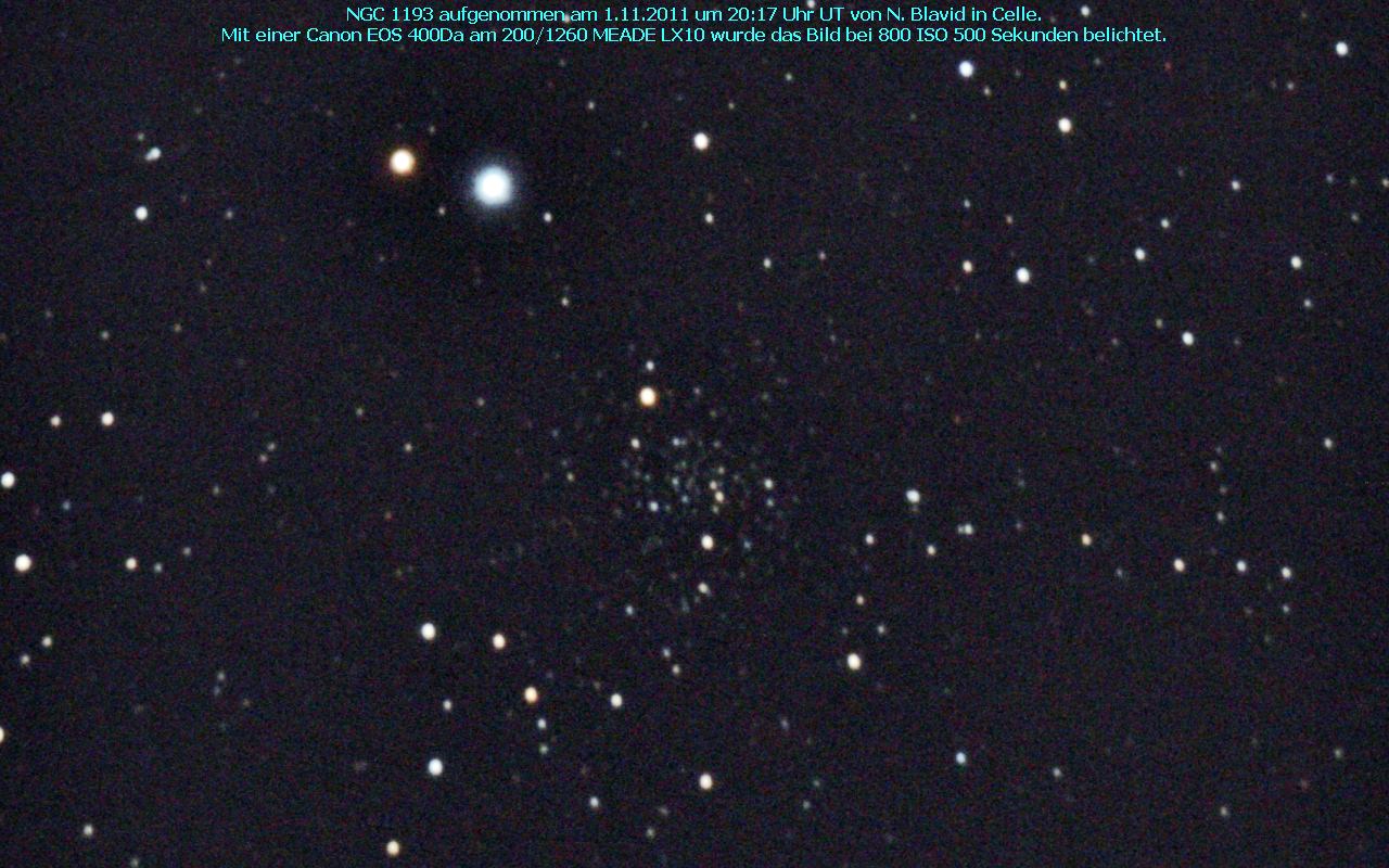 NGC 1193 ist ein offener Sternhaufen vom Typ II 3 m. Entdeckt wurde das Objekt am 24.Oktober 1786 von Friedrich Wilhelm Herschel.