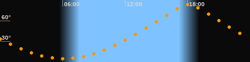 | Höchster Stand (Kulmination) | 18:04 Uhr (h = 83,7°) |