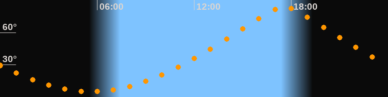 | Höchster Stand (Kulmination) | 17:35 Uhr (h = 83,7°) |