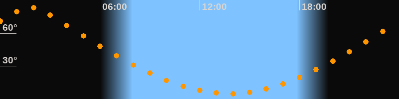 | Höchster Stand (Kulmination) | 01:44 Uhr (h = 83,7°) |