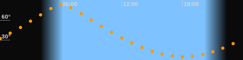 | Höchster Stand (Kulmination) | 06:05 Uhr (h = 83,7°) |