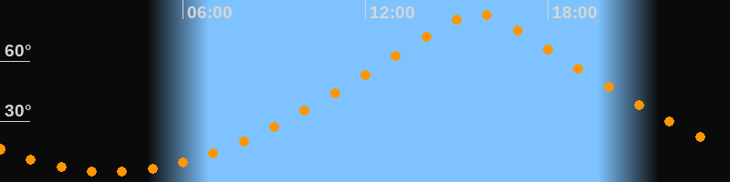 | Höchster Stand (Kulmination) | 15:40 Uhr (h = 83,7°) |