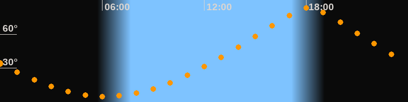 | Höchster Stand (Kulmination) | 18:09 Uhr (h = 83,7°) |