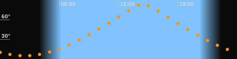 | Höchster Stand (Kulmination) | 14:27 Uhr (h = 83,7°) |