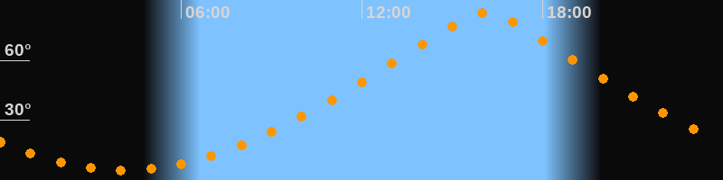 | Höchster Stand (Kulmination) | 16:06 Uhr (h = 83,7°) |