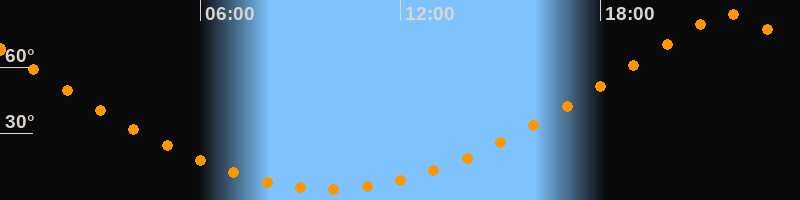| Höchster Stand (Kulmination) | 21:52 Uhr (h = 83,7°) |