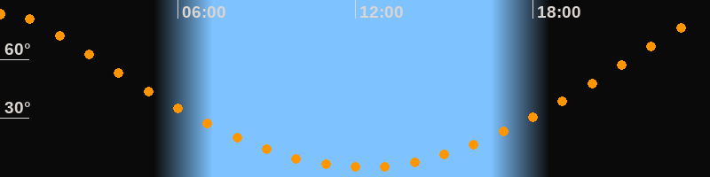 | Höchster Stand (Kulmination) | 00:14 Uhr (h = 83,7°) |