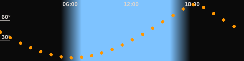 | Höchster Stand (Kulmination) | 19:09 Uhr (h = 83,7°) |