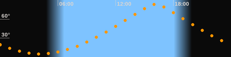 | Höchster Stand (Kulmination) | 16:09 Uhr (h = 83,7°) |