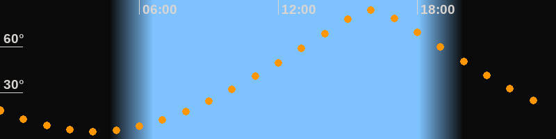 | Höchster Stand (Kulmination) | 16:02 Uhr (h = 83,7°) |