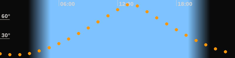 | Höchster Stand (Kulmination) | 13:21 Uhr (h = 83,7°) |