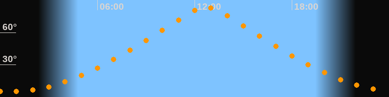| Höchster Stand (Kulmination) | 12:41 Uhr (h = 83,7°) |