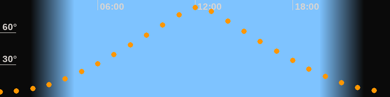 | Höchster Stand (Kulmination) | 12:10 Uhr (h = 83,7°) |