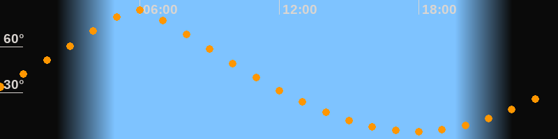 | Höchster Stand (Kulmination) | 05:52 Uhr (h = 83,7°) |