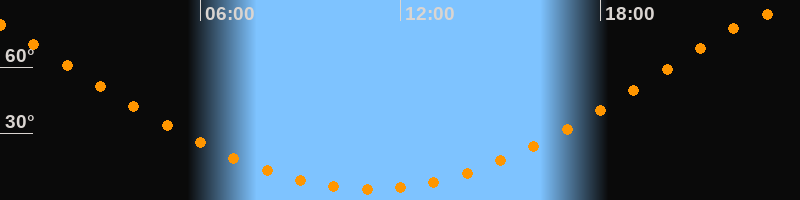 | Höchster Stand (Kulmination) | 23:04 Uhr (h = 83,7°) |