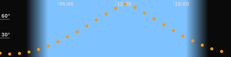 | Höchster Stand (Kulmination) | 13:06 Uhr (h = 83,7°) |