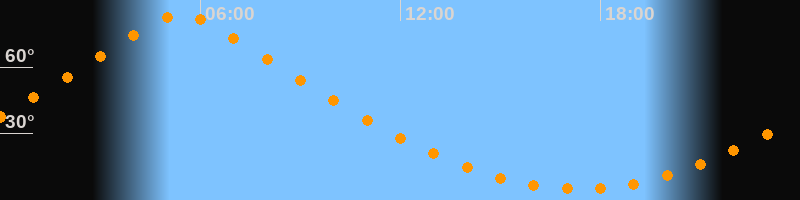 | Höchster Stand (Kulmination) | 05:25 Uhr (h = 83,7°) |